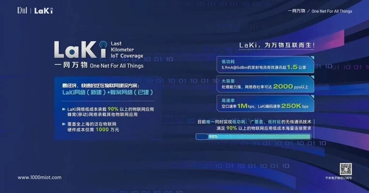 LaKi取名于Last Kilometer IoT Coverage, 音同lucky(幸运的)。千米电子研发该技术的初衷是为“万物互联”提供一个投资回报尽可能高的物联网基础设施(IoT infrastructure)核心技术,以摆脱目前物联网行业大量应用依赖补贴、多示范应用却少规模应用的不正常现状,让物联网的投资有利可图,从而实现行业的可持续发展。