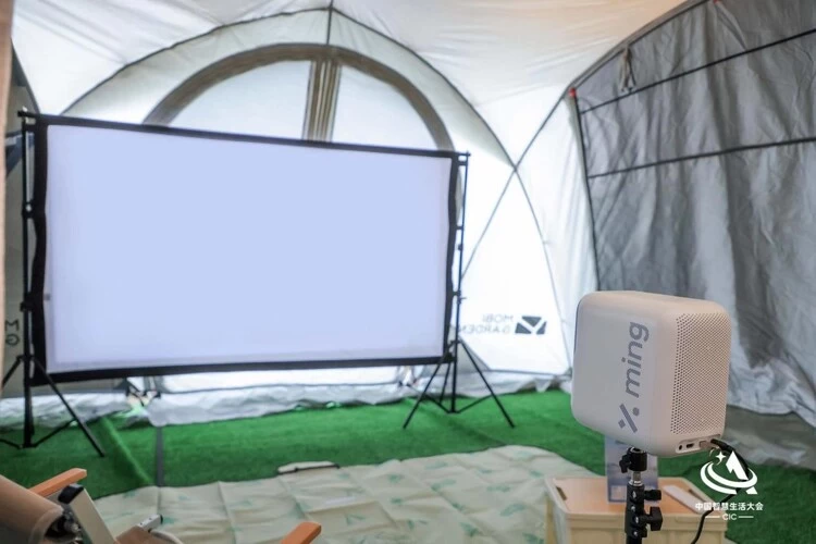 在现场,小明搭建露营展示区,现场展示旗下小明Q3 MAX智能投影仪、小明Q3智能投影仪、小明Q2智能投影仪等多款产品。作为小明年度旗舰新品,小明Q3与小明Q3 MAX还在大会上同时入选由中国电子视像行业协会、中国标准科技集团和中家院(北京)检测认证有限公司联合颁发的《2023智慧生活科技好物选购指南》,该指南旨在促进提升消费品的有效供给能力,引导消费科技的创新发展趋势,揭示智慧时代下的潮流风尚,最终引领人民群众实现美好生活。