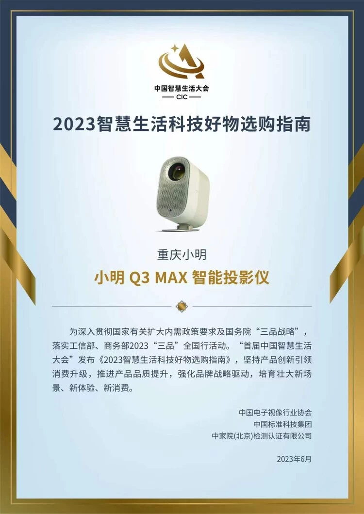小明Q3智能投影仪入选首届CIC中国智慧生活大会《2023智慧生活科技好物选购指南》