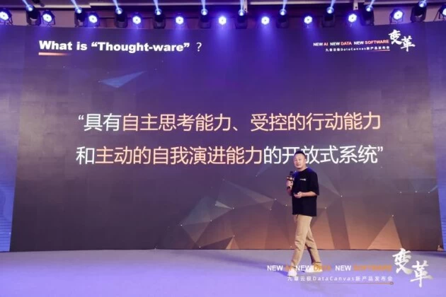 九章云极DataCanvas公司主任架构师杨健在发布会上对“思维件”做了进一步阐释,他说,“思维件”具有自主思考的能力、受控的行动能力、主动的自我演进能力。