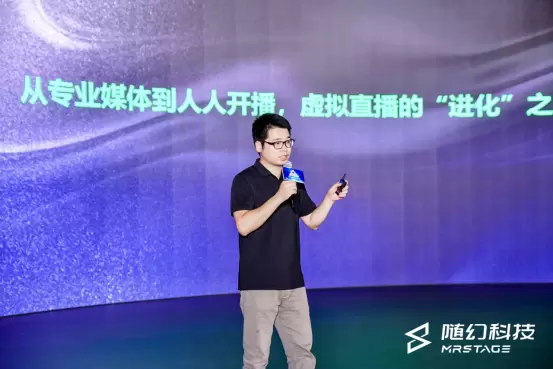 分享会的最后,随幻智能科技创始人兼CEO洪煦上台对活动嘉宾的莅临表达了感谢,随后也发表了以“从专业媒体到人人开播 虚拟直播的‘进化’之路”为主题的演讲。洪煦表示,直播有着多种多样的落地场景,而XR实时虚拟技术让虚拟直播一路进化,直至如今已经覆盖了从专业广电到企业甚至个人的全部应用场景,满足了各行各业多元化的直播需求。