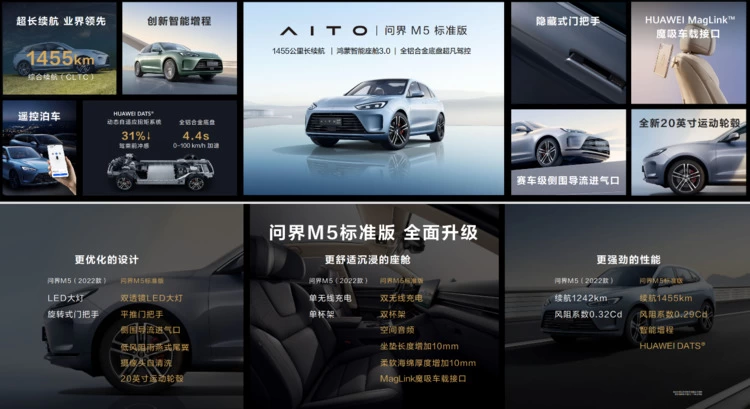 在AITO问界M5智驾版用户体验日上,AITO问界M5标准版正式亮相。问界M5系列的超可靠智慧性能SUV再升级,给消费者带来更优化的设计、更持久的续航、更智能的体验和更强劲的性能。