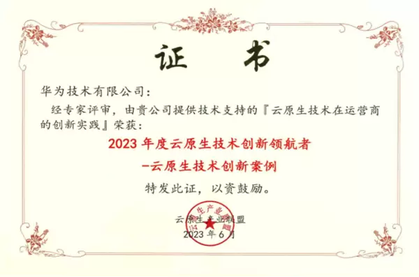 华为携手中国移动荣获“2023年度云原生技术创新领航者-云原生技术创新案例”大奖