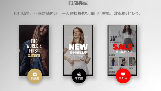 仙视“门店标牌云”是仙视集团自主研发的屏幕内置管理系统,可多场景应用满足多行业门店管理需求。为品牌方千家门店提供统一高效地屏幕管控和内容服务。针对服装品牌旗下 ,旗舰店、专门店、折扣店等不同门店类型 ,系统可实现设备形态统一管理,发布策略记忆,可做到不同应用场景,不同营销内容,一键发送千家店铺终端显示,高效运营节省成本。