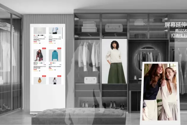 系统后台关联商品库存数据,可实现及时促销、秒上新,屏幕可放大展示更多服饰细节 ,给用户下单 N 个理由。灵活画面管理,个性设计,屏幕支持横、竖屏来回切换播放,适用不同场景。屏幕播放可展示无限 SKU 服饰商品 ,打通线上线下购物场景 ,让门店不局限于有限线下空间展示 ,让消费者拥有更多购物选择。