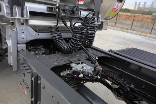 乘龙H7 LNG牵引车搭载15L排量燃气机,最大功率输出530马力,最大扭矩输出2500牛米。在配置大排量燃气发动机同时,匹配高传动效率12挡变速箱以及小速比后桥,使其在高速上平均时速更高,在山区路爬坡效率更高,强劲动力链很好满足高效物流用户的使用需求。