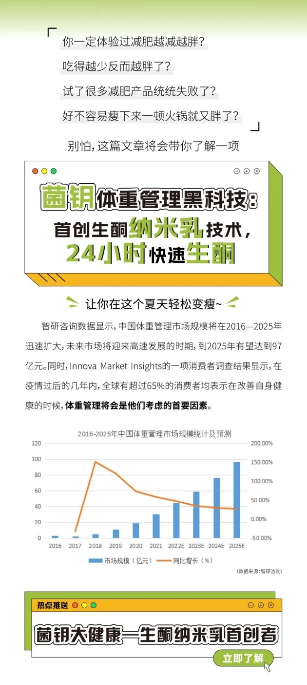 重磅丨菌钥大健康体重管理黑科技,首创24小时极速生酮纳米乳技术