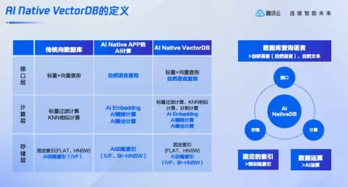 腾讯云提出,向量数据库不仅应该支持自然语言查询,更应将AI算法深度融合至计算层、存储层和数据库引擎中,从而提升AI原生应用的开发效率。