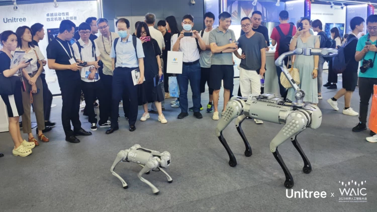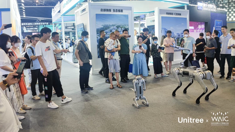 2023世界人工智能大会:宇树四足机器人吸引参会观众眼球
