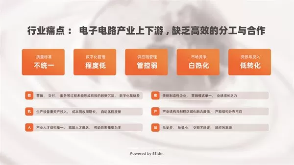 如何洞察电子电路行业心声,捕捉产业需求,提高产业链上下游企业之间的高效融合?电子电路行业竞争日趋白热化,企业的数字化、自动化普及率低,数字化转型是提升企业竞争力的有效手段,企业的数字化需求逐渐变成为整个产业数字化的共性化需求。