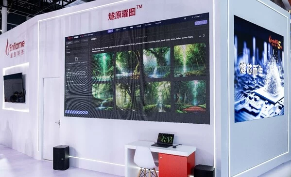 在燧原科技展台,以燧原图为代表的数个可交互设施组成了此次展台引人入胜的“互动体验站”,以零距离的体验,向现场来宾全景展示了基于燧原科技算力的人工智能时代企业级应用。