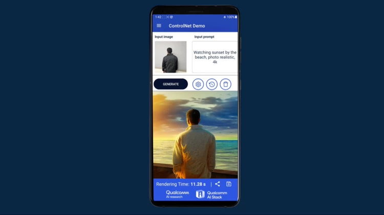 在WAIC现场,高通还带来了Stable Diffusion、ControlNet等生成式AI用例的技术展示。这是全球首个运行在Android手机上的Stable Diffusion终端侧演示,和全球最快的手机上的ControlNet终端侧演示。