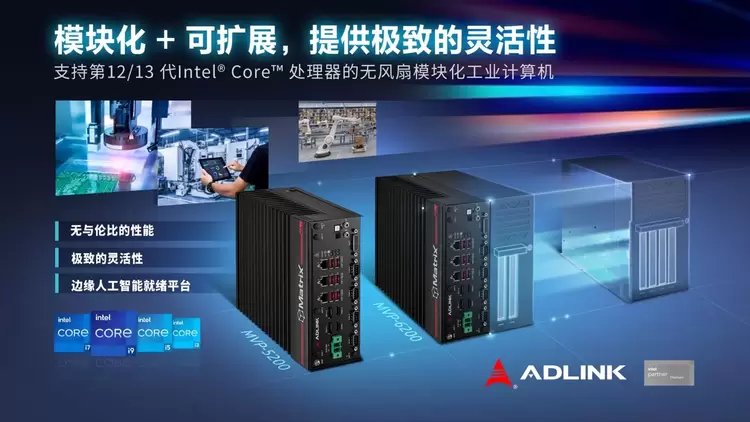 全球领先的边缘计算解决方案、工业PC和主板提供商,英特尔®合作伙伴联盟钛金会员—凌华科技,宣布推出最新的MVP系列无风扇模块化计算机:MVP-5200紧凑型模块化工业计算机和MVP-6200可扩展模块化工业计算机,支持第12/13代Intel®Core™ i9/i7/i5/i3和Celeron处理器。该计算机还采用了Intel®R680E芯片组,最高功率为65W,还可以将GPU卡集成到加固级机箱中,以满足边缘侧的AI推理需求,可用于但不限于智能制造、半导体设备和仓库应用等。