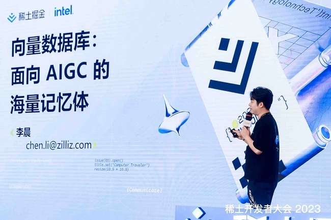 在大模型与 AIGC 论坛上,Zilliz 开发者关系及市场运营负责人、客户成功与生态发展负责人李晨进行了名为《向量数据库:面向 AIGC 的海量记忆体》的主题演讲。