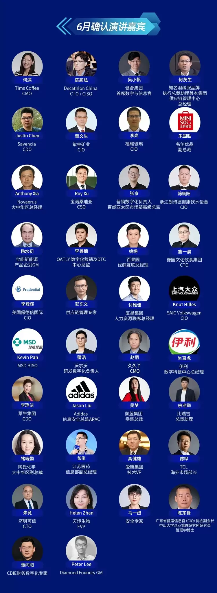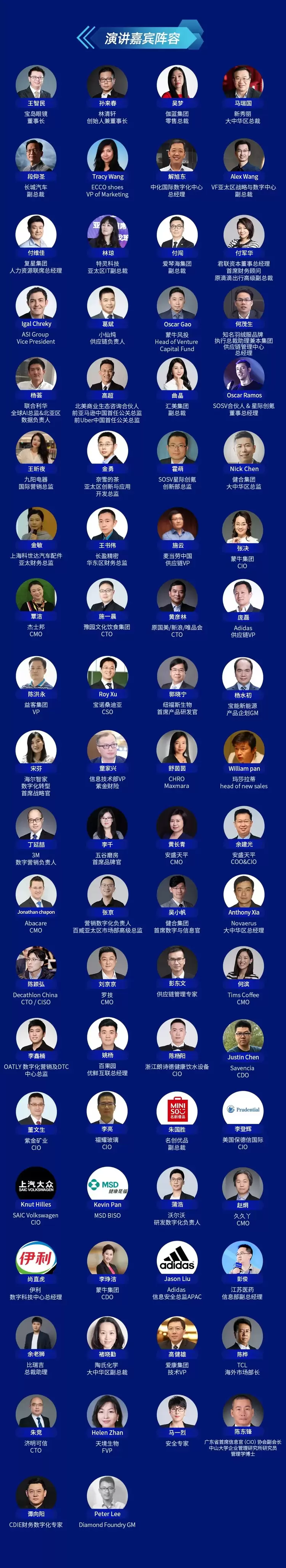此次CDIE峰会云集众多知名企业CEO、VP、CDO、CIO、CTO、CFO、CMO等高层作为演讲嘉宾,分享他们在行业转型战略上的洞察以及实践经验,展示最新的行业数字化案例,为参会嘉宾带来全新的视角和启发,助力企业创新及商业的可持续发展,推动行业乃至整个生态的数字化转型!