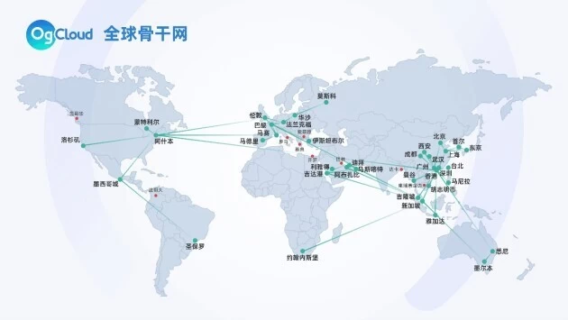 在全球ICT服务的第一阶段,OgCloud在帮助企业扩展全球市场的同时,加快布局全球骨干网节点和自建数据中心。通过自主研发,OgCloud逐步打造了专属的全球网络。