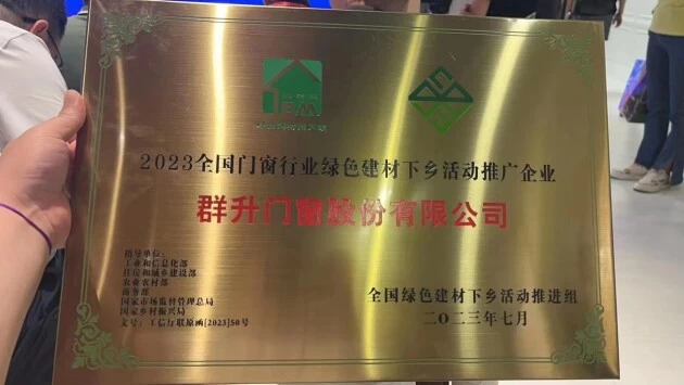 群升门窗在2023年荣获“2023全国门窗行业绿色建材企业”荣誉称号,是中国市场对群升环保事业的认可,在今后的道路中,群升将持续积极支持国家‘双碳’战略实施,坚持绿色环保的生产主旋律,与社会共同探索可持续发展。