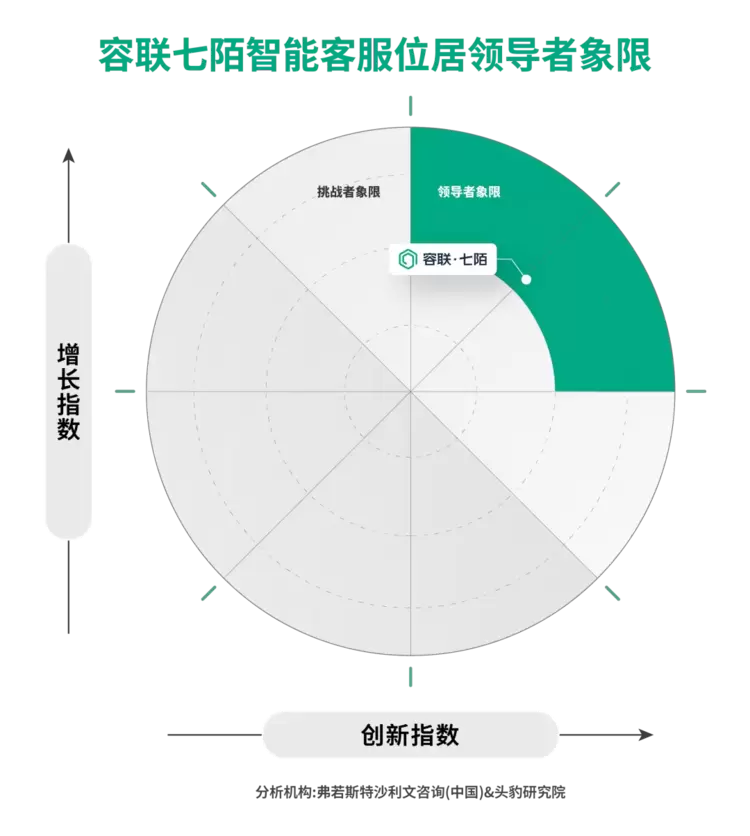 由“创新指数”和“增长指数” 综合评分,容联七陌位列市场领导者梯队。