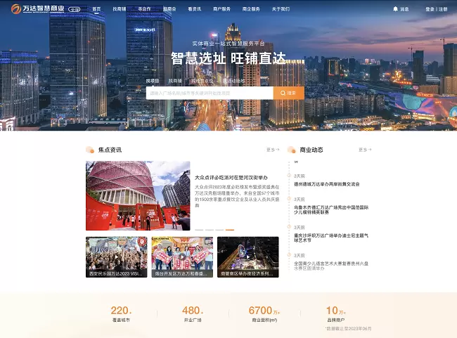 万达智慧商业平台是以赋能购物中心品牌商户运营为核心,专注于商户智慧服务和商铺智慧管理的实体商业一站式智慧服务平台。平台依托万达自主研发的AI智能算法和大数据分析处理技术,将线上运营和数字化能力与线下万达广场的经营场景深度融合,打通全国近500座万达广场的线上服务,覆盖商业选址、租铺、开店、经营全服务场景,满足品牌和商户的各类经营需求。用户可通过APP、小程序及PC端进入平台,便捷地享受商业服务。