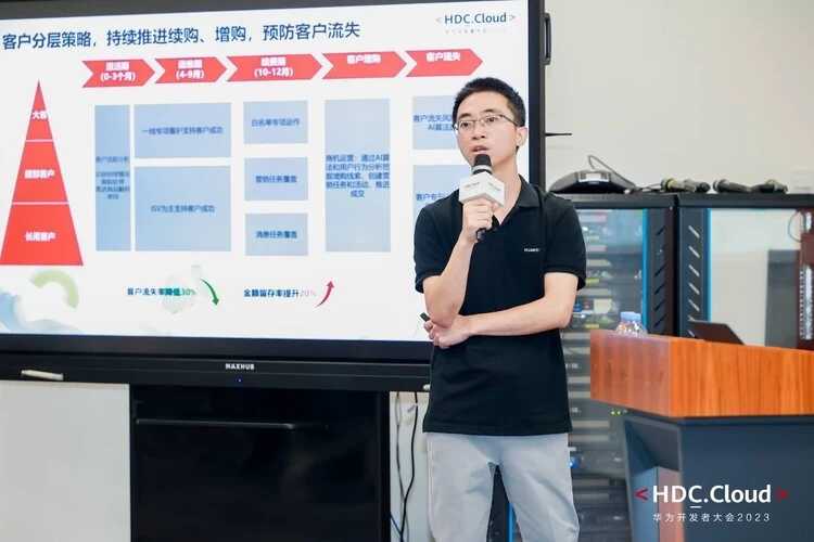 为了进一步加深企业对前沿技术赋能营销能力的印象,华为云云商店客户运营负责人黄坚生也带来了《从“大洞察”到“大增长”toB增长方法论及实践分享》。依托华为云云商店繁荣的应用生态,企业可从获客、客户留存、潜在客户挖掘、商品矩阵优化等多方面获得营销能力提升。在实践中,通过华为云云商店的赋能,企业ROI提升25%。而在华为云云商店的运维期的风险预警服务下,企业的用户流失率可降低30%,金额留存率提升20%。
