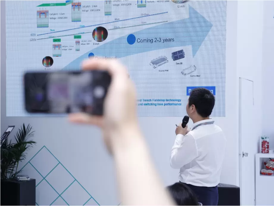 值得一提的是,瑞能半导体在展会现场还带来了精彩的技术讲解,与大家共同见证瑞能优质高效的产品组合的风采。来自瑞能的工程师在展台上凝神聚力地分别以《瑞能高性能SIC器件助力低碳产业发展》、《瑞能Si MOSFET产品及其应用介绍》、《瑞能晶闸管和硅基二极管在功率电源中的应用》和《瑞能高性能IGBT产品及应用介绍》的主题,多维度深入浅出地分享了目前瑞能摘得的累累硕果,收获了现场的一致好评。