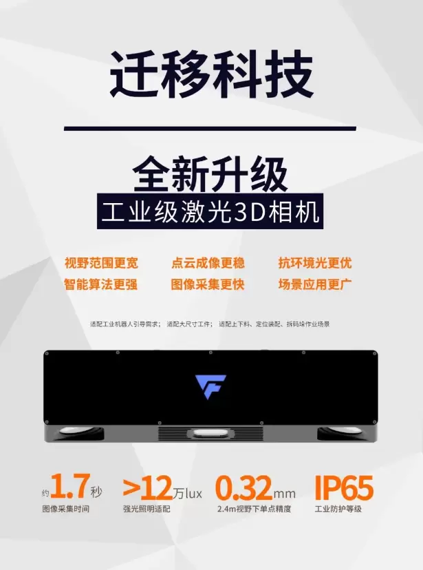 重磅新品!迁移科技发布全新激光3D相机,抗环境光性能优异