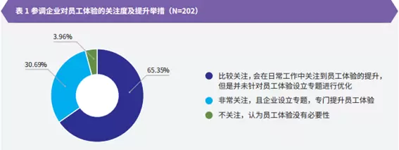 近年来,全球竞争加剧、市场需求不断变化、新兴科技快速发展,这些外部环境的不稳定性给企业带来了巨大的压力和挑战。基于此,企业开始普遍意识到员工体验在企业变革中的重要性。在本次参与调研的企业中,有超过9成的企业表示对员工体验有所关注,仅3%左右的企业认为员工体验没有必要进行关注。