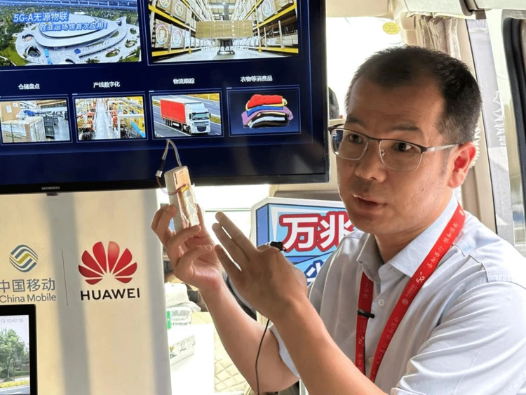 “别小看这小小的一个卡片,它在无电源连接的情况下,可以与室外覆盖200多米的网络产生物联,超远覆盖能力大幅度领先当前的RFID,同时标签识别的准确率可达99%。”工作人员介绍。“无源物联是基于5.5G网络新增的物联能力,适用于标识类连接同时支持高精度定位、微型传感类连接能力,在物流、汽车制造、电力行业、畜牧行业等有广泛应用前景,可带来百亿级别的联接空间。