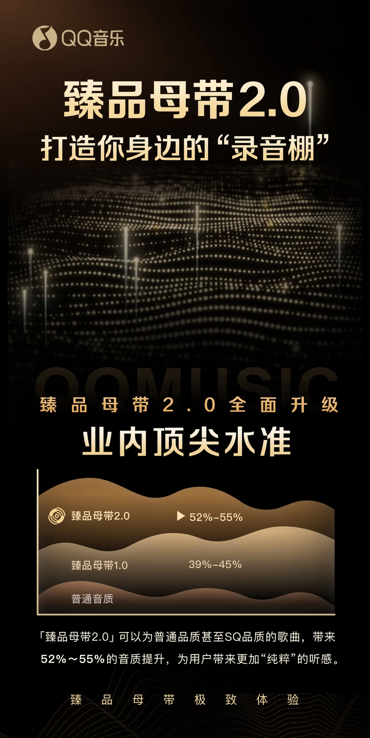 QQ音乐臻品母带2.0于7月17日全新上线,带来高达55%音质提升