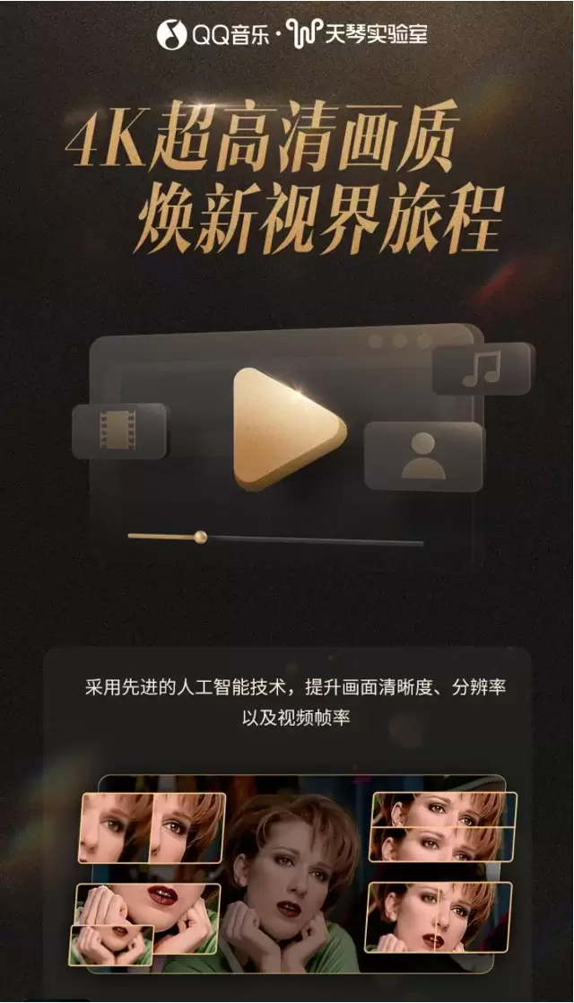 新版本的QQ音乐还加入了全新的「4K视频专区」,这一专区集合了丰富多样的音乐视频内容,包括怀旧金曲、经典重温、酷炫说唱、综艺现场等不同类别,并为超级会员用户提供专享内容。该专区的所有视频都采用4K超高清技术,带来更加丰富、清晰的画面细节,营造细腻、锐丽的视觉体验。同时,依托腾讯音乐天琴实验室先进的人工智能技术,视频的画面清晰度、分辨率和帧率都得到了大幅提升,最高帧率可达60fps,实现流畅、自然的动态画面表现,从而为用户带来真实、丝滑的观影体验。无论是热门舞蹈、现场演出还是二次元文化,「4K视频专区」都将以最真实、最精彩的画面展现在用户面前,大幅提升用户音乐视频的观赏体验。