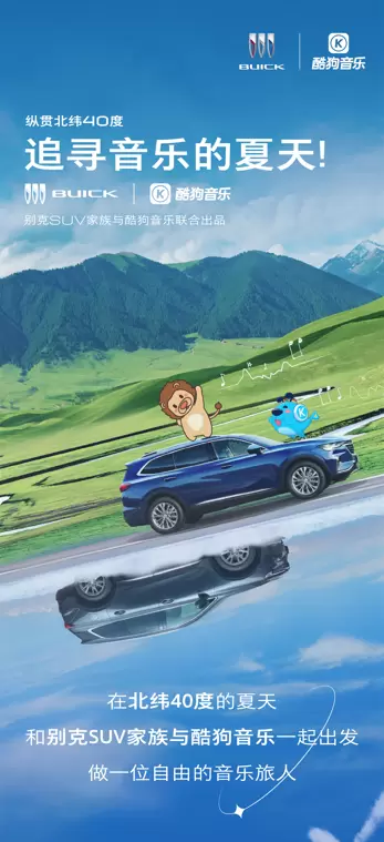 作为中国领先的数字音乐平台,酷狗音乐与别克强强联合,以个性化、定制化、沉浸式的音乐体验,引领年轻人的生活态度,最大程度满足用户的情感和交互需求,不断提高品牌口碑与声量。接下来,双方还将推出线下主题活动、专属汽车音效等,敬请期待。