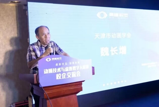 会议正式开始前,由天津市动画学会理事长魏长增做本次活动开幕式致辞,魏理事长首先感谢在座众多领导和社会各界的大力支持。接着简单介绍当前动作捕捉在元宇宙中的重要作用及动作捕捉技术已经广泛应用于游戏、电影、体育、医学、教育等领域。为了更好应对行业变革、响应党的二十大一科融汇的重要理念,为实现"到2035年建成文化强国"的国家战略目标,希望通过天津市动画学会为动画、游戏、媒体等相关企业与院校建立校企融合和交流的平台而努力,并预祝本次活动圆满成功。