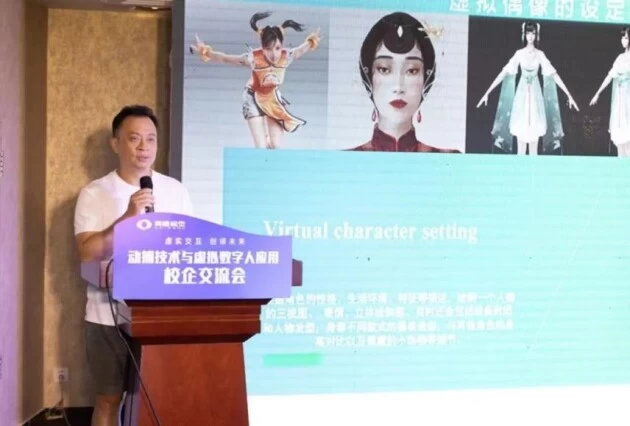 天津大学灵然工业元宇宙研究中心主任、灵然创智(天津)动画科技发展有限公司总经理王一夫分享了就虚拟偶像其中的制作技术实现做了详细的讲解及介绍了他们公司过往的一些经典案例。