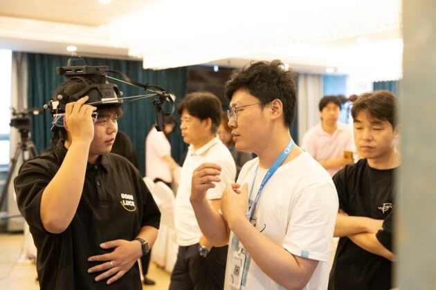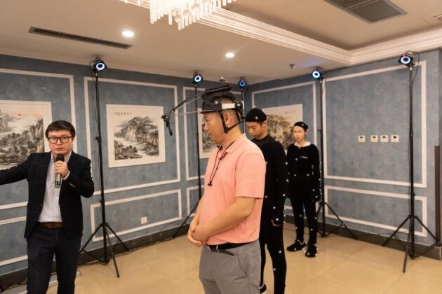 △ 现场来宾体验青瞳视觉自研自产的动捕头盔