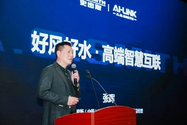 峰会现场,市场副总经理兼商用产品营销总经理张晖作了《好风好水 高端智慧互联》主题演讲,对该系统进行了详细的介绍:"AI-LiNK高端智慧五恒集成系统,采用了AI-LiNK智慧互联技术,通过PLC电力载波+WiFi双模驱动让设备间自主联动,创造安全、稳定、可靠的智慧舒适体验。系统搭载专利变风量技术、具有分室控温,快速除湿、智能调节新风量、温度恒定等功能,真正实现室内环境舒适和节能的智慧控制,充分满足用户对冷暖、新风、热水、净水等需求,具有高效节能、舒适健康等特点。同时,根据别墅、大平层、公寓等不同户型,为用户提供标准化、定制化的好风好水解决方案。更值得一提的是,由品牌对服务全流程进行在线化、精细化管理,为用户提供从设计、施工、到交付的全流程一站式服务,更有总裁直达通道等创新举措保障用户的美好家居体验。