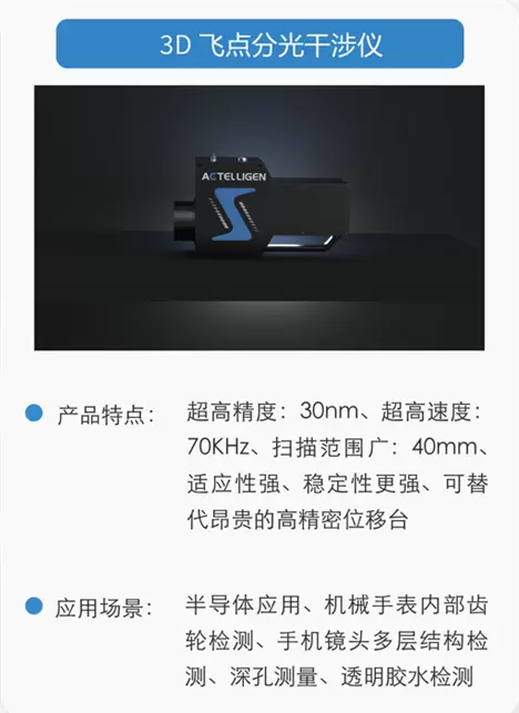 中科行智已发布的3D飞点分光干涉仪,荣获“机器视觉创新产品TOP10”,更是国内首家针对透明和镜面材料的纳米级测量仪。可广泛应用于半导体晶片、微机电系统、精密加工表面、材料研究等领域,为国内半导体行业及高精密行业赋能,可趋于替代国外高精密传感器,助力中国智能制造发展!