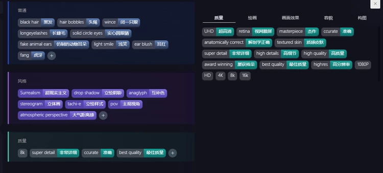 如今,为了提高绘图效率,海艺AI提供大量专业提示词,通过点击可以选择提示词,就可以轻松地创作出图,不必再为思考合适的提示词而苦恼;