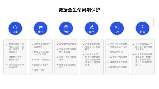 事实上,数据安全一直以来都是法大大的根基。为了最大限度保障用户的数据安全,法大大建立了以数据为核心的动态信息安全防控体系,通过数据治理、安全机制、风险管理和审计溯源等管理和技术手段,重点识别和控制数据采集、传输、存储、使用、共享、销毁等动态过程中的安全风险,保障数据全生命周期安全可控。