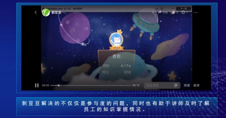 就如何提升员工的学习专注度这一问题,魏建强介绍了一项名为“剥豆豆”的游戏化答题工具。这个工具可以在线上和线下培训场景中使用,通过动感的背景音乐和实时的积分排名,营造紧张的竞赛PK氛围,激发参训人员的注意力和积极性。同时,剥豆豆工具还可以帮助讲师及时了解员工的知识掌握情况,针对知识难点和薄弱点进行强化,提升员工实际运用知识的能力。