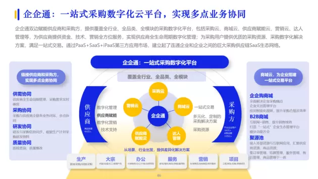 另一方面,通过PaaS+SaaS+iPaaS第三方应用市场,建立起了连通企业和企业之间的巨大采购供应链SaaS生态网络。