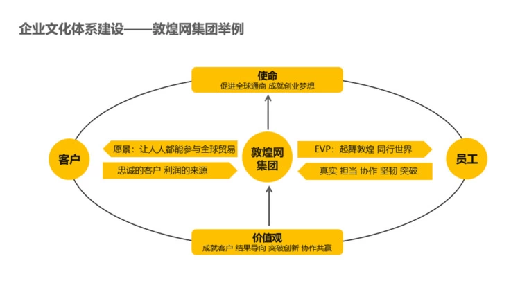 企业和员工关系。EVP是企业对员工做的承诺 ,同样员工对企业的行为也需要做出承诺。敦煌网集团员工推崇的品质,是真实、担当、协作、坚韧和突破。
