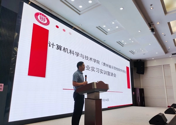 7月14日上午,计算机科学与技术学院(贵州省示范性软件学院)企业实习实训宣讲会在2号行政楼报告厅成功举办。这次宣讲会旨在为学院的学生提供一个与企业沟通交流的平台,促进校企合作,推动学生的实习实训工作。