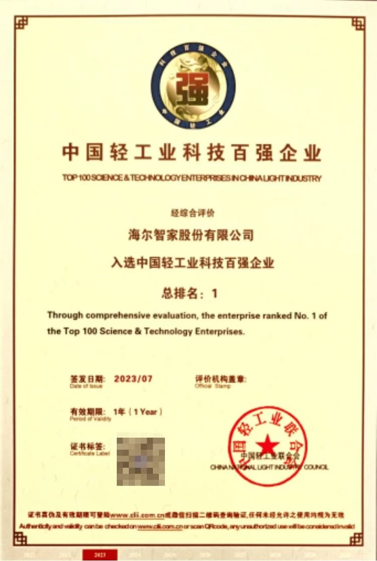 中国轻工业科技百强企业名单发布 海尔斩获三连冠