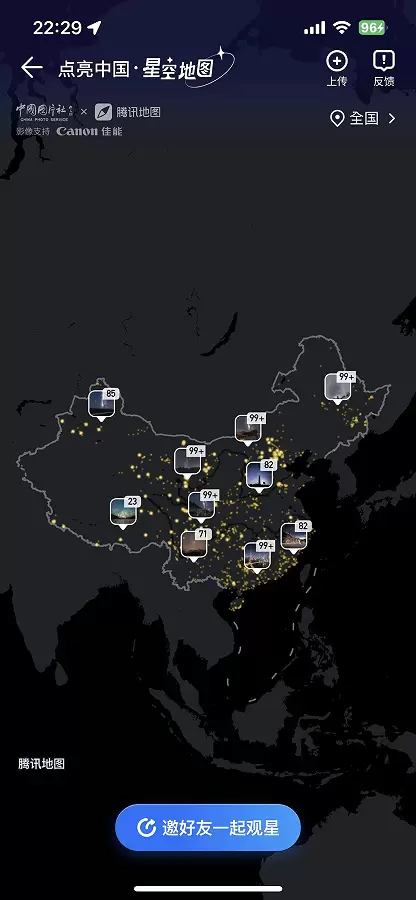 随着“夜间经济”的多元化发展,“观星”逐渐成为休闲的新方式,而通过影像记录天空中闪烁的繁星,也帮助大众留下了许多美好瞬间。新华社中国图片社联合腾讯地图共同上线“点亮中国星空地图”项目,佳能作为影像支持合作伙伴加入,共同助力大众用影像记录浩瀚星空,一起点亮星空地图,守护我们的家园。自活动上线以来,受到大家的热烈欢迎,无论是专业星空摄影师还是星空摄影爱好者纷纷上传,共同用一幅幅精美的星空摄影作品点亮中国星空地图。