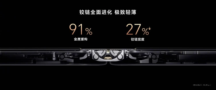 铰链是打造极薄折叠屏的关键,极大影响着手机的轻薄度和无缝贴合度。它不仅要轻,还要有足够的强度支撑整机使用。