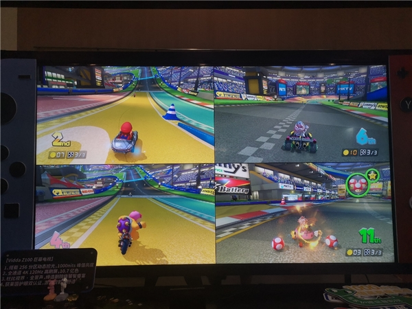“在100吋大屏上玩4分屏游戏简直太酷了!”一场赛车结束后,参与游戏的游客小张感慨道。据悉,Vidda Z100巨幕电视具备120Hz高刷,可以满足游戏玩家对于流畅性的需求;60W+震撼扬声器和256分区矩阵式动态控光,则可以带来沉浸度极高的声效,让游戏玩家在大屏上“自由挥洒”。