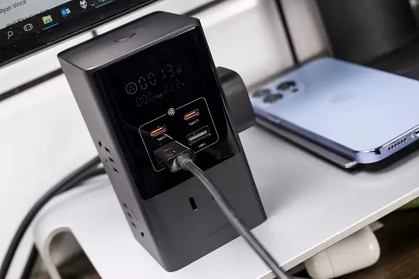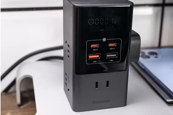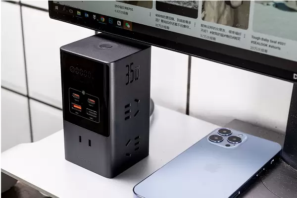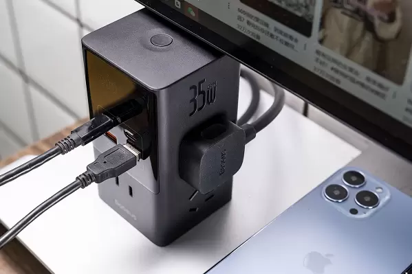快充插线板以先进技术换取更少的体积和更多的供电接口,倍思灵睿35W数字式插线板作为典型代表,通过引入氮化镓技术和创新设计,实现了数码设备的快充功能,同时打破了传统插线板的局限,为用户带来了更小巧、功能更强大的充电解决方案。这样的进步,让用户在日常充电过程中享受到更便利、高效的充电体验,推动了快充插线板的广泛应用和受欢迎程度。