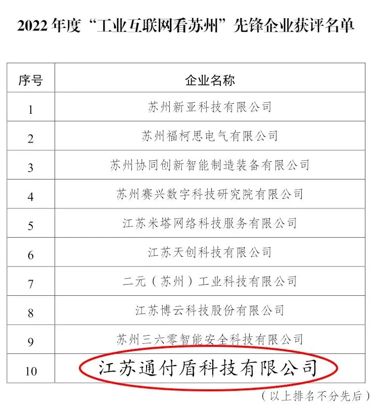 通付盾获苏州市工业互联网产业联盟“工业互联网看苏州”先锋企业