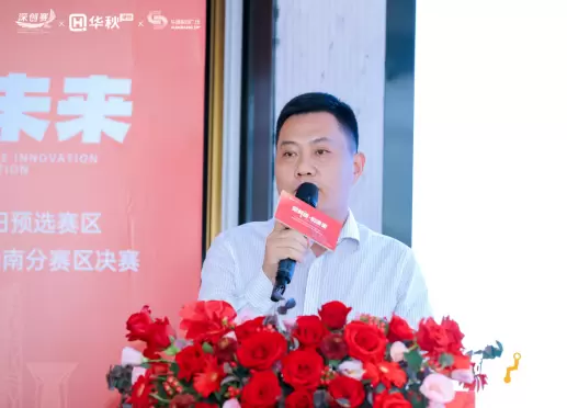 紧接着华南分赛区联合主办方-深圳华强云产业园管理有限公司项目常务副总经理安继君先生也做了欢迎致辞,并向与会嘉宾介绍了华强科创广场运营情况:华强科创广场将携手福田区工信局重点打造首个以先进智造业为主题的产业园区-湾区智造总部大厦,园区将重点围绕智能终端、智能机器人、半导体与集成电路、新一代信息技术等先进智造业上下游企业招商引资,入驻企业将享受最高5折租金减免,同时项目将充分利用华强集团生态资源,赋能产业发展,全方位构建企服平台,打造产业展厅、共享会议室等公共空间,链接资源,聚力发展,为企业成长保驾护航。
