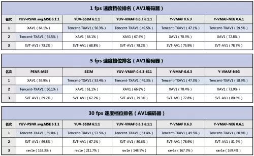 此外,在各编码赛道中,腾讯V265编码器在H.265赛道三个速度档位15项指标获得总计12项第一;腾讯TXAV1编码器取得AV1赛道15项指标总计14项第一;Tencent266编码器在H.266赛道共计15项指标中获得15项全部第一。